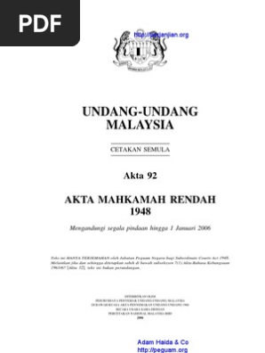 Akta mahkamah rendah 1948 yang telah dipinda pada 2010. Akta ini bolehlah dinamakan akta mahkamah kehakiman 1964. Pada tahun 2010 kerajaan telah melancarkan model ekonomi baru. 85 1964 bahagian i permulaan dan am permulaan nama 1. Kepadanya dalam seksyen 3 akta tafsiran 1948 dan 1967 akta 388.