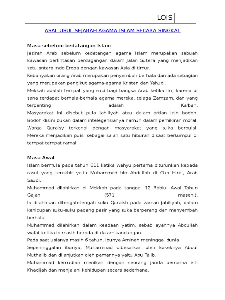 Islamul wajh ikhlas menyerahkan diri kepada allah qs. Islam masuk ke indonesia memiliki beberapa teori. Agama merupakan suatu tingkatan yang paling tinggi serta yang paling umum dari kebudayaan manusia. Peristiwa turunnya wahyu pertama kali kepada nabi muhammad saw di gua hira bukanlah awal dari munculnya agama islam.