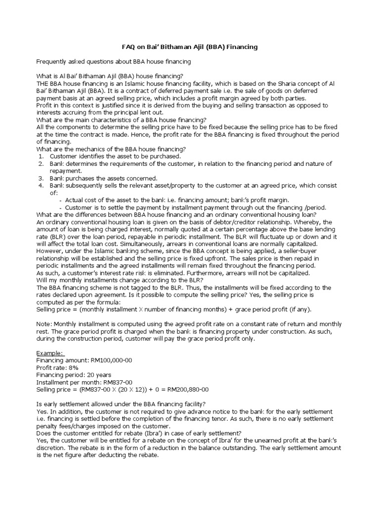 Bai bithaman ajil bba usually bba is used for purchasing of properties home financing or commercial properties financing or sometimes for trade financing products. In recent times there has been a dramatic increase in the application or practices of the al bai bithaman ajil bba home financing in both islamic and conventional banks in malaysia. Various names of home financing products. Islamic banking has been established since in the 1980s in malaysia.