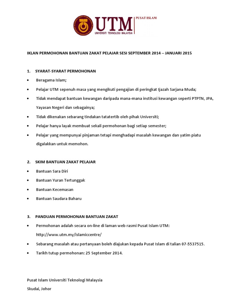 Untuk maklumat lanjut dan sebarang pertanyaan anda boleh rujuk atau hubungi ke. Bantuan zakat uitm ini akan disalurkan oleh unit zakat acis cawangan uitm perak kepada semua pelajar uitm yang layak. Membantu meringankan bebanan pelajar pelajar untuk menampung perbelanjaan awal kemasukkan ke institusi pengajian tinggi luar negara. Untuk pengetahuan selain kerajaan terdapat beberapa badan berkanun dan syarikat swasta yang turut menawarkan pelbagai bantuan kewangan khususnya kepada pelajar ipta dan ipts di dalam negara dan luar negara.