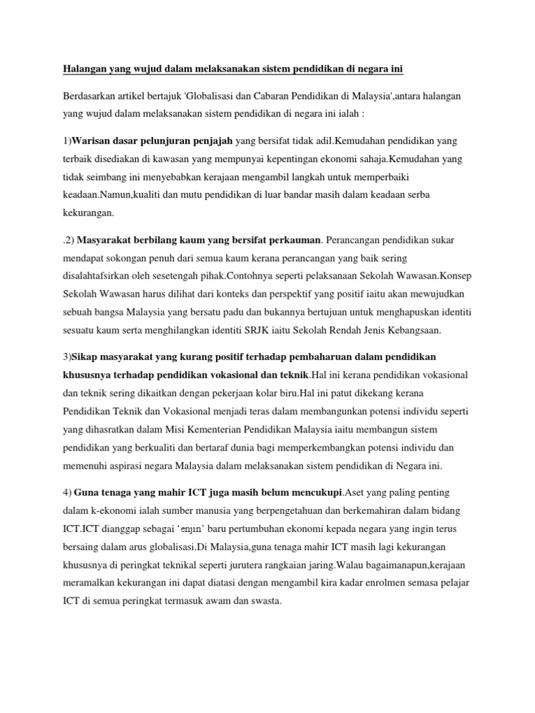 Cabaran Sistem Pendidikan Di Malaysia Dalam Arus Globalisasi