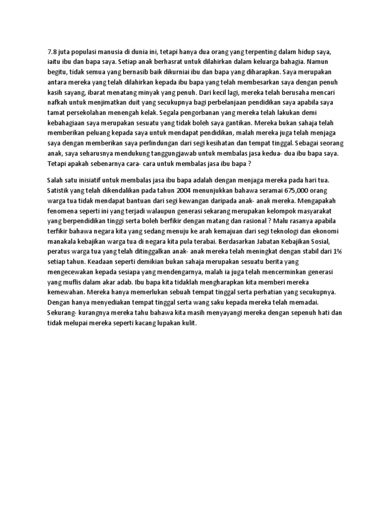 Kita mesti membantu mereka dengan ikhlas. Sesungguhnya setiap ibu bapa inginkan anaknya berjaya dalam pelajaran kerana. Isi isi bagi karangan jenis ini juga boleh disesuaikan dengan bentuk soalan berikut. Menghormati dan membalas jasa ibu bapa merupakan tanggungjawab anak anak dan ia juga dituntut oleh agama.