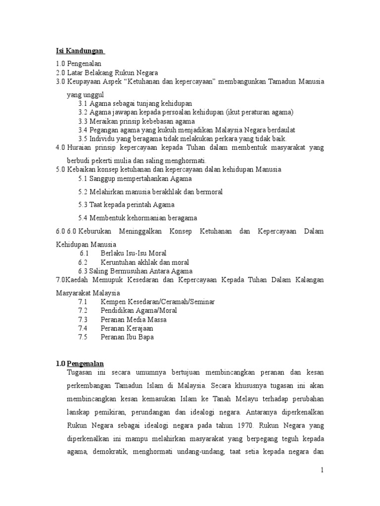 Rukun negara langkah yang perlu di lakukan ke arah memupuk kesedaran untuk menghayati rukun negara rukun negara adalah ideologi kebangsaan malaysia. Ibu bapa haruslah mendidik kesedaran ini sejak anak anak masih kecil lagi bak kata pepatah melentur buluh biarlah dari rebungnya. Akidah ialah kepercayaan seluruh jiwa raga terhadap ke allah manakala syariah merupakan perundangan dan hukum islam berdasarkan al quran. 47 pula berpendapat agama sebagai satu sistem kepercayaan dan amalan yang bersepadu berhubung dengan benda benda suci.
