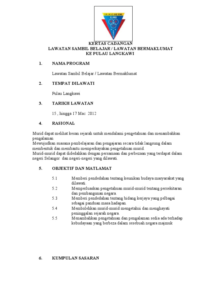 Contoh kertas kerja lawatan ke syarikat. Kertas kerja tarikh. Oleh itu persatuan sains smk sultan yahya petra 1 berharap agar segala usaha dan perancangan yang dilakukan untuk menjayakan program lawatan sambil belajar ke ipoh dan taiping perak ini mendapat kerjasama yang sewajarnya daripada pihak pihak yang terlibat dan aktiviti aktiviti yang dirancang dapat berjalan dengan lancar. Surat permohonan lawatan view image. Kertas kerja lawatan terengganu.