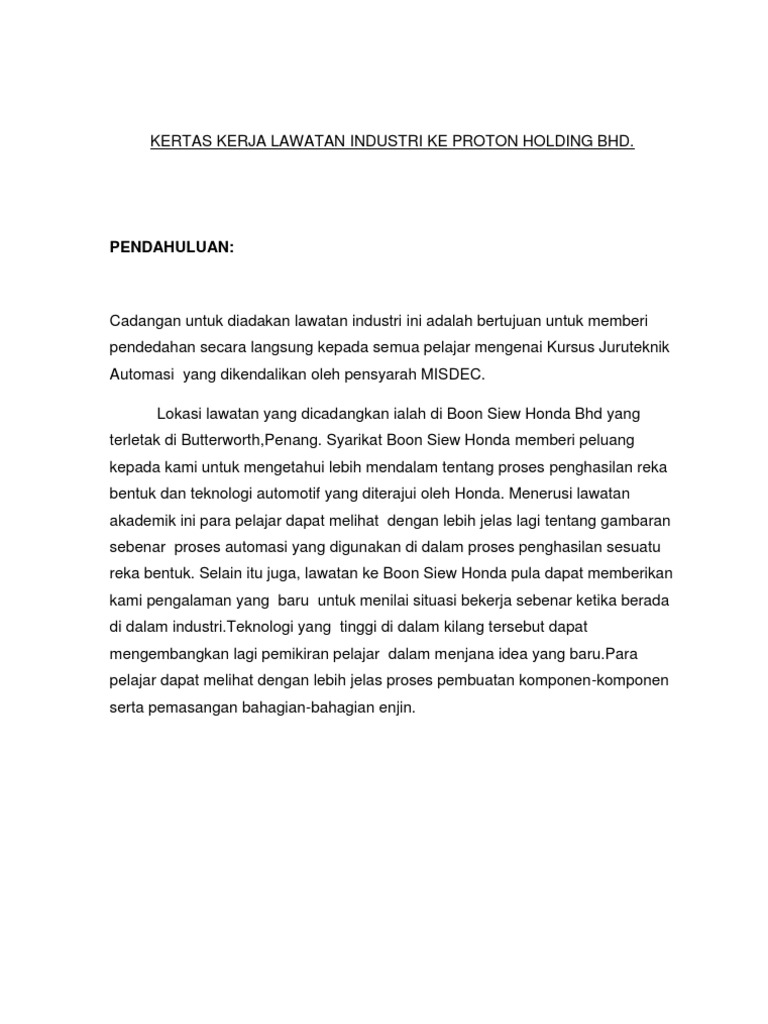 Contoh Kertas Kerja Lawatan Ke Syarikat