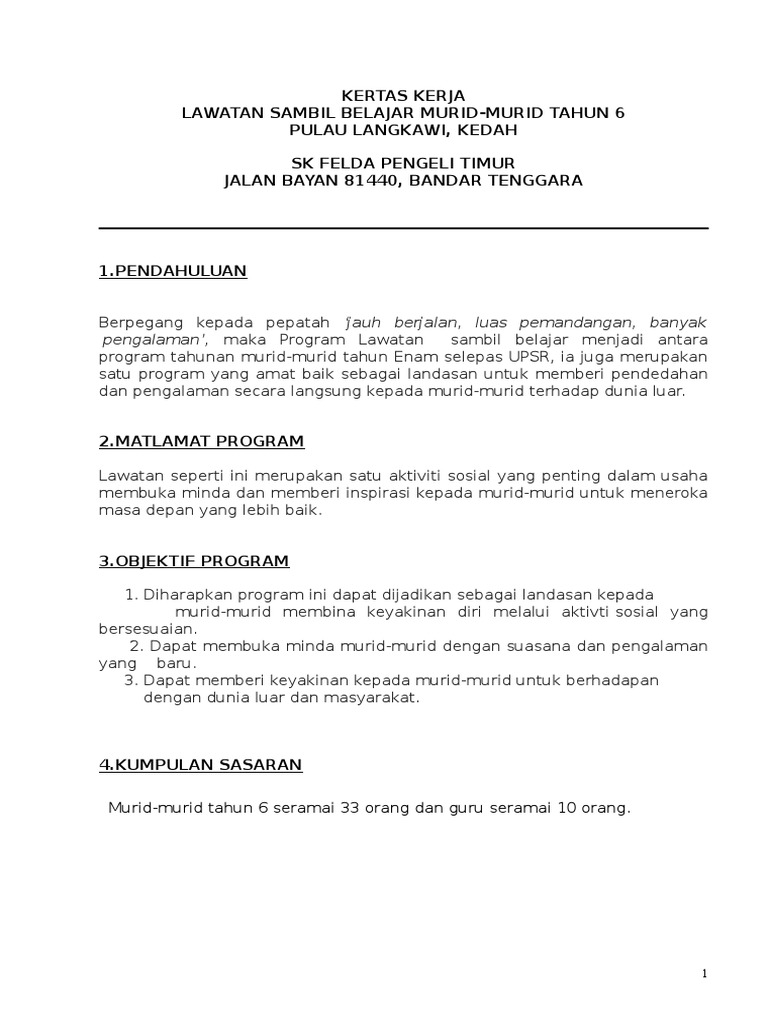 Gigih bekerjasama untuk ke langkawi blav 5003. Kertas kerja lawatan terengganu. Contoh kertas kerja lawatan sambil belajar ke langkawi dayang nadzirah happy 04 47 58 01 27 09 tue. Lawatan ke pusat pembangunan.