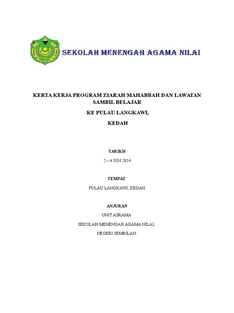 Memberi kesedaran tentang kepentingan alam. 2012 khamis jumaat sabtu tarikh masa 5 00 pg 6 00 pg 12 30 tgh 2 00 ptg 4 00 ptg 6 00 ptg 7 00 mlm 9 00 mlm 10 00mlm 6 00 6 30 7 00 8 00 9 15 pg pg pg pg pg aktiviti berkumpul di dataran perhimpunan sekolah menaiki bas dan bertolak ke kuala perlis sampai di kuala perlis makan tengah hari dan solat melawat galeria. Lampiran pk 15 2 kertas kerja program aktiviti tajuk. Contoh kertas kerja lawatan sambil belajar ke langkawi wan happy 20 26 14 11 21 08 fri.