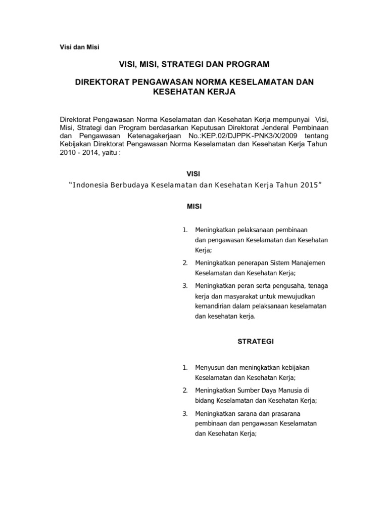 Contoh visi dan misi k3 perusahaan. Inilah visi misi k3 perusahaan dan hal lain yang berhubungan erat dengan visi misi k3 perusahaan serta aspek k3 secara umum di indonesia. Visi misi dan core values dalam bisnis lihat juga. Contoh visi misi perusahaan pada dasarnya seluruh perusahaan harus memiliki visi dan misi yang dapat memperkuat akar perusahaan. Menjadi lembaga keuangan yang unggul dalam layanan dan kinerja.