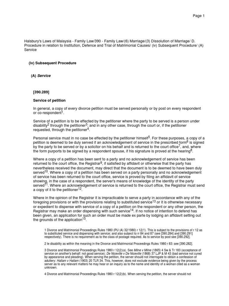 Divorce and matrimonial proceedings rules 1980 p u a 32 1980. In dealing with a divorce case the people s court should carry out mediation between the parties. There are different rules for service of an application for a matrimonial civil partnership order divorce dissolution petition and other types of proceedings within the jurisdiction. 7 the scope of this regulation covers civil matters whatever the nature of the court or tribunal. 20 900 the family law index was created by the supreme court of nsw and records name of petitioner respondent and co respondent if named divorce number year and remarks.