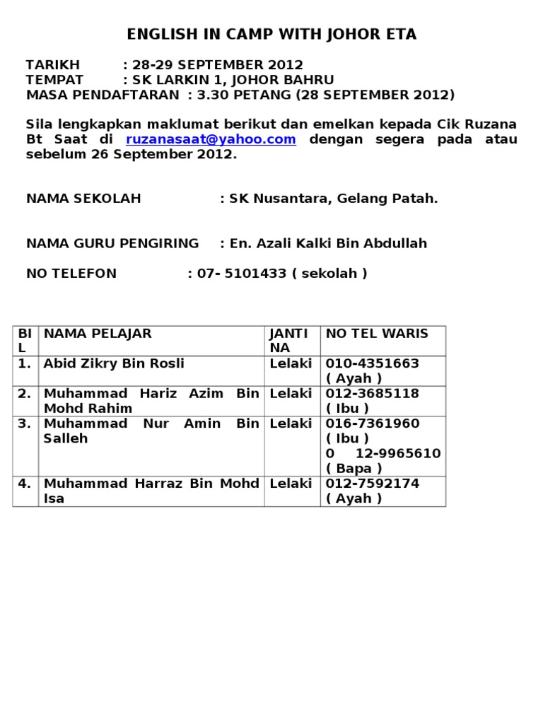 Sebenarnya mematuhi apa sahaja sop ini memberi banyak kelebihan kepada guru termasuklah menjadi guru pengiring untuk menemani pelajar yang terlibat dengan aktiviti di luar kawasan sekolah. Bagi tujuan pengisian skt dan lnpt secara atas talian guru guru boleh merujuk contoh skt seperti. My friend sent me a link to to tis site. Untuk guru pengiring kita tempatkan sebilik seorang.