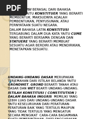 Perkataan wet diterjemahkan ke dalam bahasa indonesia undang undang dan grond. Diantaranya adalah dari bahasa belanda staat. Secara etimologi istilah negara diadopsi dari beberapa bahasa negara di dunia ini. Istilah undang undang dasar merupakan terjemahan dari bahasa belanda yaitu 12458400.