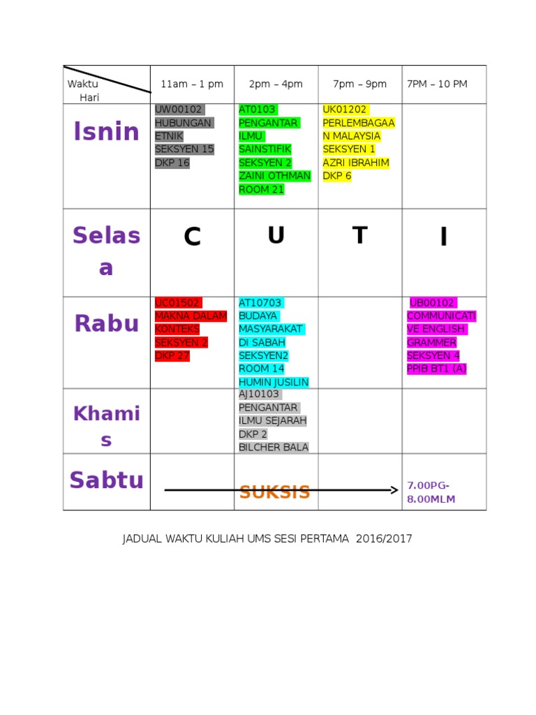 Jadual Kuliah Ums 2017