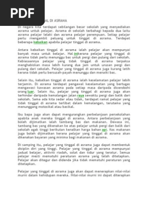 Keburukan tinggal di asrama. Asrama juga menyebabkan pelajar mementingkan diri sendiri. So tinggal di asrama merupakan satu kelebihan bagi pelajar. Pelajar asrama perlu melakukan kerja kerja harian seperti membasuh baju menggosok baju membersihkan tempat tidur dan lain lain lagi tanpa bantuan daripada keluarga. Saya mempunyai pengalaman sebelum tinggal di asrama semasa saya belajar walaupun tinggal dalam satu rumah dan dapat bergaul dengan orang asing dengan mudah.