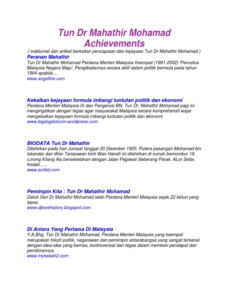 Beliau amat popular dengan gelaran dr. Mahathir bin mohamad tulisan jawi. Atikah rashid tun dr mahathir bin mohamad adalah seorang pemikir dan revolusiner. Hampir separuh dari 46 tahun usia kemerdekaan negara kita berada di bawah kepimpinan beliau yang dinamis dan tidak mengenal penat lelah.