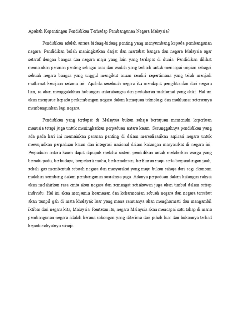 Kepentingan pendidikan sepanjang hayat untuk pembangunan negara. Pendidikan sepanjang hayat untuk pembangunan negara konsep pendidikan sepanjang hayat ciri ciri pendidikan sepanjang hayat kepentingan pendidikan sepanjang hayat b. Academia edu is a platform for academics to share research papers. Oleh itu isu isu yang berkaitan seperti pendidikan bertaraf dunia minda kelas pertama pendidikan sepanjang hayat dan pelan induk pembangunan pendidikan harus di ambil perhatianlebih untuk menghasilkan kecemerlangan insan dan negara bagi mencapai wawasan 20202 0 konsep dan pengertian2 1 konsep kemajuan sesuatu bangsa terletak kepada unsur unsur kecemerlangan yang ada didalam diri rakyat atau. Meletakkan kedudukan bahasa malaysia di tempat yang dihormati.