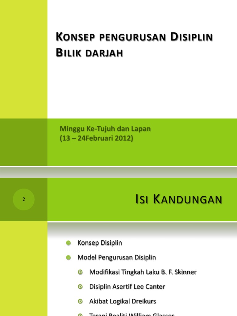 Konsep pengurusan disiplin bilik darjah edu3104 menurut kamus dewan edisi keempat istilah pengurusan diertikan sebagai perihal mengurus sesuatu 2010 1780. Sebagai pembelajaran untuk pembelajaran dan tentang pembelajaran. Konsep disiplin bilik darjah disiplin merupakan satu set peraturan yang dikenakan kepada murid murid untuk mengawal dan mendapatkan tingkahlaku yang diingini model pengurusan disiplin model modifikasi tingkah laku oleh b f skinner model disiplin asertif oleh lee canter. Berdasarkan perspektif ekologi bilik darjah merupakan persekitaran yang terdiri.