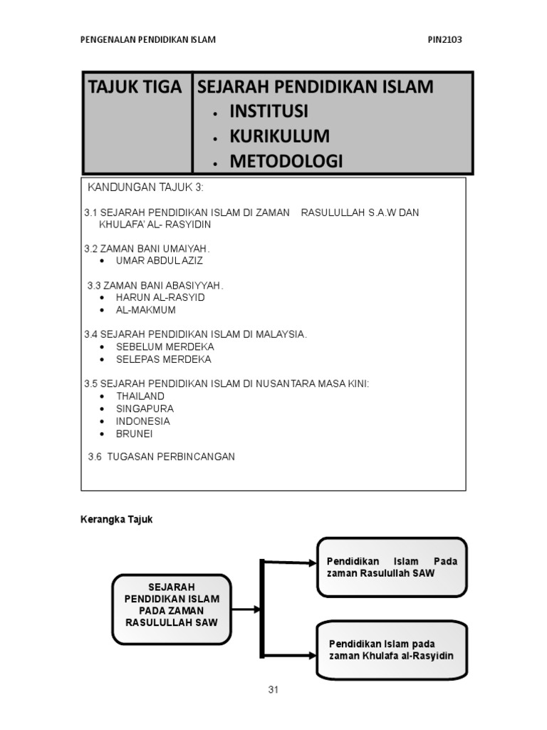 Kurikulum pendidikan islam di malaysia pada masa kini. Kurikulum pendidikan islam pada masa klasik dimunculkan oleh cendikiawan muslim pada masa klasik seperti al farabi ibnu sina dan lain lain. Dilaksanakan di kesemua sekolah rendah pada tahun 1983 aini et al. Tumpuan pada aspek ilmu dan pendidikan prof. Diantara kritik terhadap pelaksanaan pendidikan islam di sekolah banyak bermuara pada aspek metodologi pembelajaran pai dan orientasinya yang lebih bersifat normatif teoritas dan kognitif termasuk di dalamnya aspek gurunya yang kurang mampu mengaitkan dan berinteraksi dengan mata pelajaran dan guru non pendidikan agama dan aspek lainnya yang banyak disoroti menyangkut aspek muatan kurikulum.