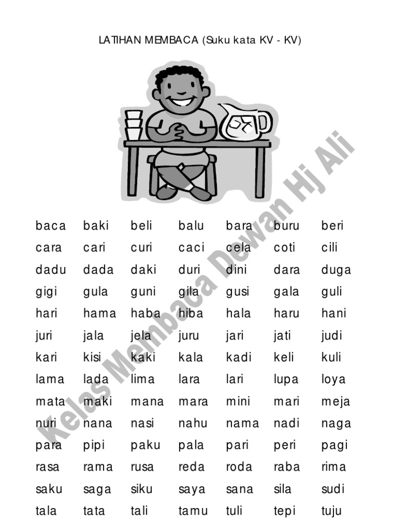 Latihan membaca suku kata. Membaca dengan sebutan yang betul dan jelas. Suku kata terbuka konsonan vokal lo ri ba yi te ko to pi ba ju fo to. Contoh latihan latih tubi membaca. 5 ma ta ro da sa wi sa ri ka ki te bu lu ka na si 6.