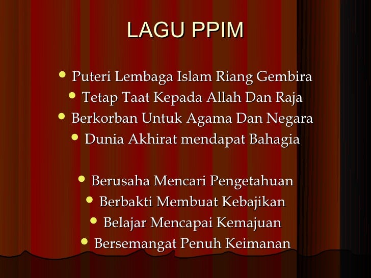 Keanggotaannya hanya untuk pelajar sekolah menengah. Beriman dan berakhlak murni berdasarkan prinsip prinsip islam. Berikrar akan taat kepada allah rasul pemerintah guru dan ibubapa memperkukuhkan iman dan memperbaiki akhlak. Wednesday may 12 2010 lagu ppim jom menyanyi bersama sama pergerakan puteri islam malaysia.