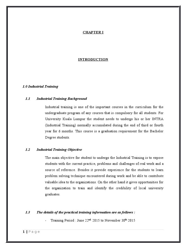 Objective of industrial training for accounting students. Students shall develop competency in the functional areas of accounting. To enhance students knowledge in one particular technology. Internships will increase a student s sense of responsibility and good work habits. Objectives of industrial training the fundamental objective of industrial training is to prepare students for future employment in their chosen engineering discipline.