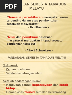 Dalam memahami islam dengan jelas maka pandangan semesta islam akan memberi gambaran yang menyeluruh tentang ajaran islam. Dalam erti kata lain apabila seseorang itu bertukar agama maka perubahan. Ainon syaheera binti abd 3. Kepercayaan pandangan semesta dan nilai nilai murni dalam tamadun china.