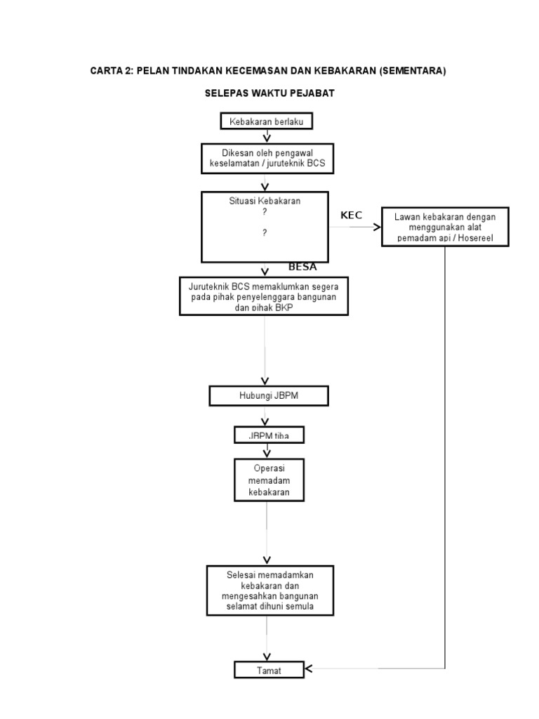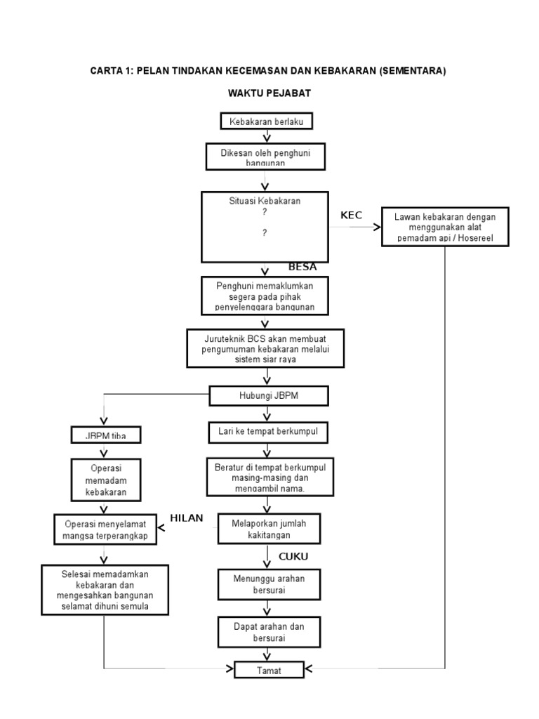Pelan tindakan kecemasan mula kebakaran kebakaran dikesan jerit api api api. Tindakan sebelum kebakaran pada tahap ini semua anggota hendaklah berusaha untuk mengetahui dan mahirkan diri dengan pengurusan pelan tindakan kebakaran dan prosedur evakuasi terkini agar akan dapat bertindak dengan sebaiknya ketika berlaku bencana kebakaran. Pelan tindakan kebakaran dan prosedur evakuasi 2018 17 j. Pelan tindakan kecemasan kebakaran sunday december 1 2013.