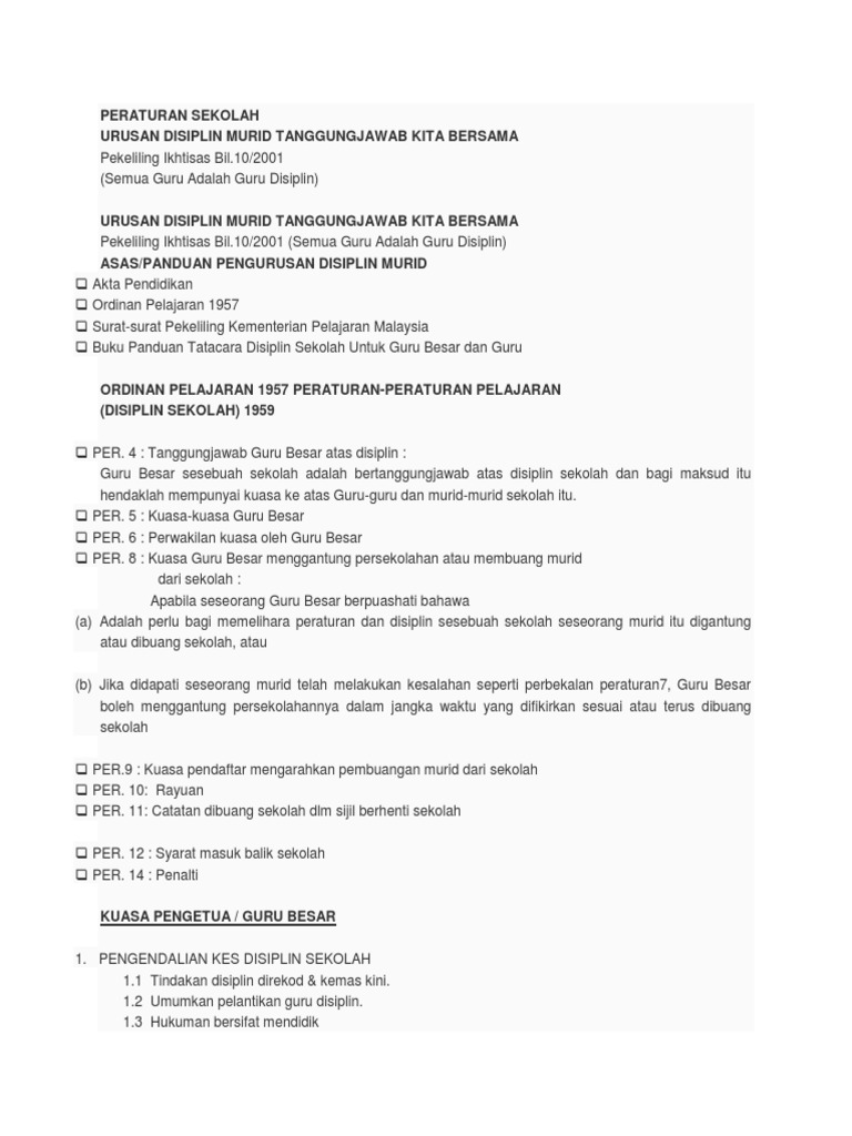Ordinan pelajaran 1957 peraturan peraturan pelajaran disiplin sekolah 1959. Seperti yang diperuntukkan pada para 10 2 ordinan pelajaran 1957 peraturan peraturan pelajar disiplin sekolah 1959. Tatacara disiplin murid peraturan peraturan pelajaran disiplin sekolah 1959 1 0 pendahuluan sekolah bukanlah sebagai badan pengajar.