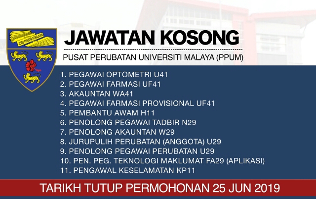 Pusat perubatan universiti kebangsaan malaysia ppukm jalan yaacob latif bandar tun razak 56000 cheras kuala lumpur malaysia. Sekiranya anda seorang warganegara malaysia yang cukup syarat kelayakan dan berumur tidak kurang daripada 18 tahun pada tarikh tutup iklan jawatan adalah dipelawa untuk memohon bagi mengisi kekosongan jawatan tetap atau kontrak. Permohonan jawatan kosong pusat perubatan universiti malaya ppum berikut merupakan maklumat iklan jawatan kosong yang ditawarkan oleh majikan terlibat. Banyak iklan jawatan kosong kerajaan swasta terkini 2019.