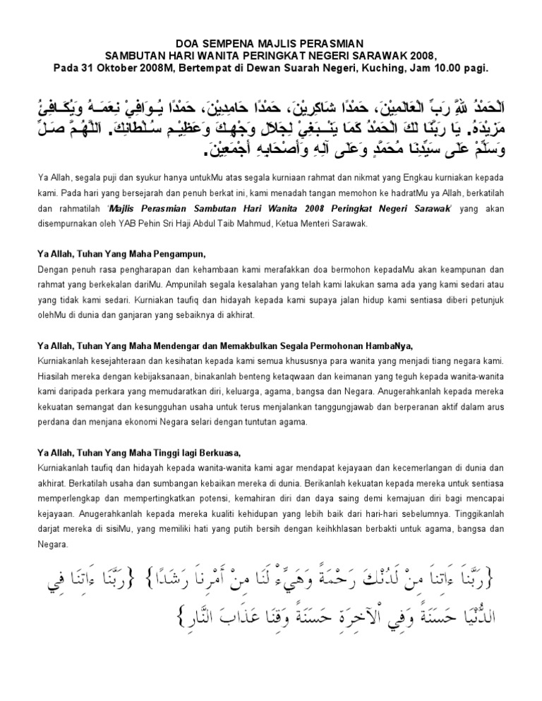 Majlis tidak rasmi tetapi formal. 9 2 isi kandungan doa i. Teks doa majlis perasmian penutup baksis polis marin langkawi doa perasmian. Penasihat khas menteri pendidikan malaysia.