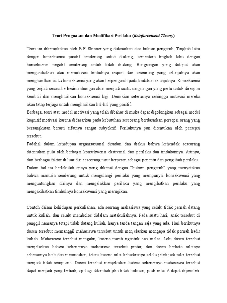 Teori modifikasi tingkah laku. Terapi tingkah laku telah bermula pada lewat tahun 1950 an dan terapi ini tidak seperti teori teori psikoterapi yang lain kerana konsep asas yang ditekankan dalam terapi ini berlandaskan eksperimen psikologi dan mengkaji prosess pembelajaran manusia serta haiwan jika dibandingkan dengan beberapa terapi lain seperti psikoanalisis yang memberi penekanan terhadap falsafah. Ahad 20 mei 2012. Tujuan peneguhan adalah supaya suatu tingkah laku berlaku dengan lebih kerap. Kedua dua teori boleh menampung dengan budaya asian yang sedia ada dan kepercayaan sosial keagamaan mereka m sumari et al 2008 24.