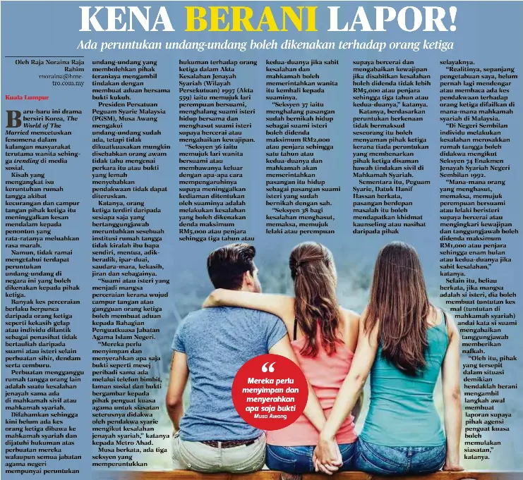 Oleh itu secara umumnya maksud sebenar orang ketiga dalam rumah tangga adalah semua individu iaitu keluarga sahabat dan masyarakat sekeliling. Sebenarnya di negara ini mempunyai undang undang syariah yang boleh dikenakan kepada orang ketiga atau dengan kata lain individu sama ada lelaki atau perempuan yang menggugat kebahagiaan perkahwinan serta rumah tangga seseorang. Ilhmynhzri november 17 2018. Utusan malaysia tarikh.